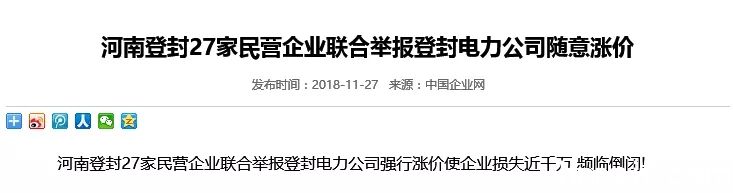 近日,多家網(wǎng)絡(luò)媒體網(wǎng)站轉(zhuǎn)發(fā)了一篇題為《河南登封27家民營(yíng)企業(yè)聯(lián)合舉報(bào)登封電力公司隨意漲價(jià)》的新聞,引起了行業(yè)的廣泛關(guān)注。