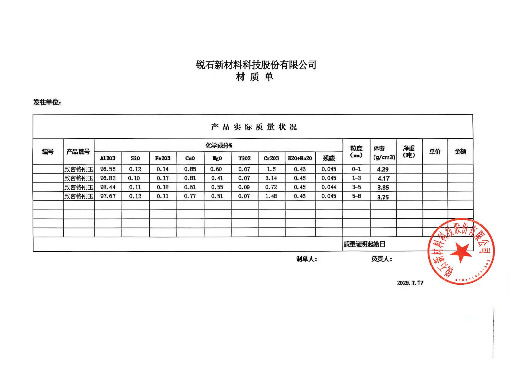 鉻剛玉是以高純氧化鋁(Al?O?≥99%)為基礎(chǔ),添加1%-3%氧化鉻(Cr?O?)經(jīng)高溫熔融結(jié)晶形成的特種陶瓷材料。其通過Cr³?離子固溶強(qiáng)化α-Al?O?晶格,實現(xiàn)物理化學(xué)性能的突破性提升,被譽(yù)為“工業(yè)金剛石”。